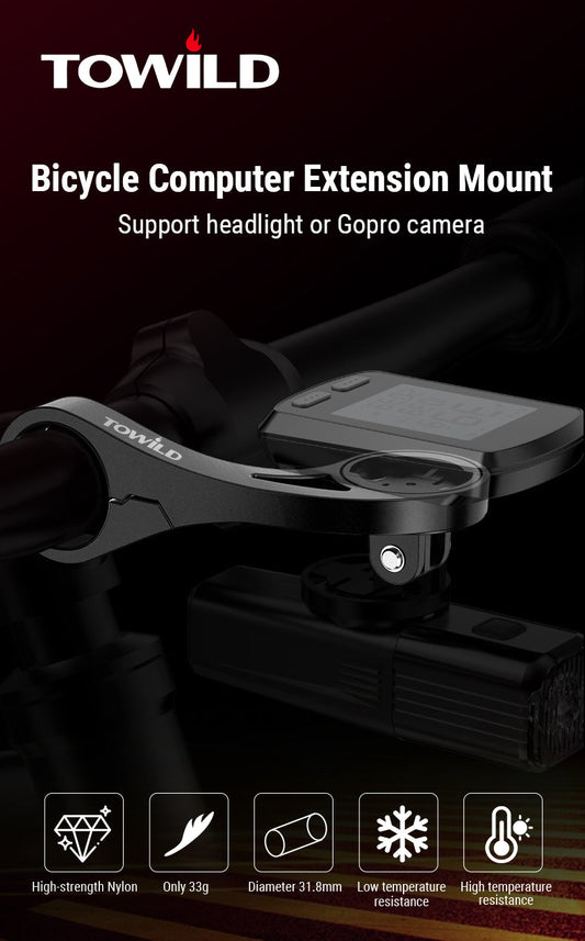 TOWILD Zintegrowany uchwyt przedłużający do komputera rowerowego, światła i GoPro