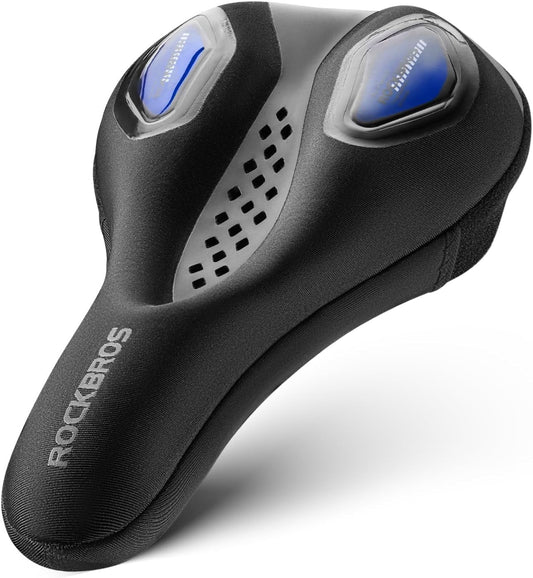 ROCKBROS Pokrowiec na siodełko rowerowe Żelowy pokrowiec na siodełko rowerowe Oddychający, wyściełany pokrowiec na siodełko dla mężczyzn i kobiet Czarny/szary (25,5 x 18 cm)