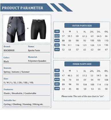 ROCKBROS Spodenki kolarskie z paskami krótkie spodenki kolarskie z wkładką M-4XL
