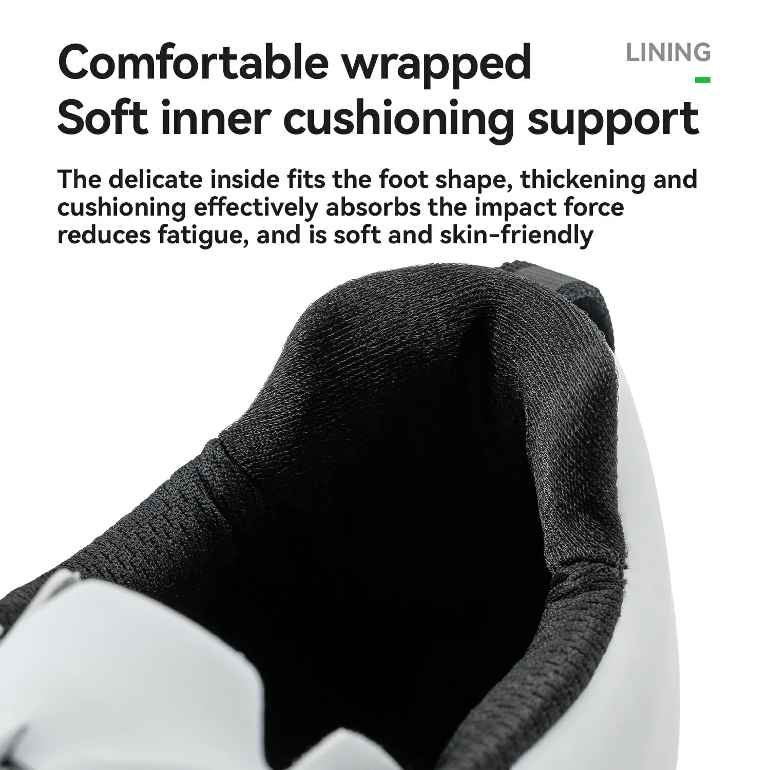 Elastyczna gumowa podeszwa zewnętrzna z gęstym bieżnikiem zapewnia stabilność i doskonałą przyczepność. Nawet na mokrych lub śliskich nawierzchniach Twoje kroki pozostają stabilne i kontrolowane.