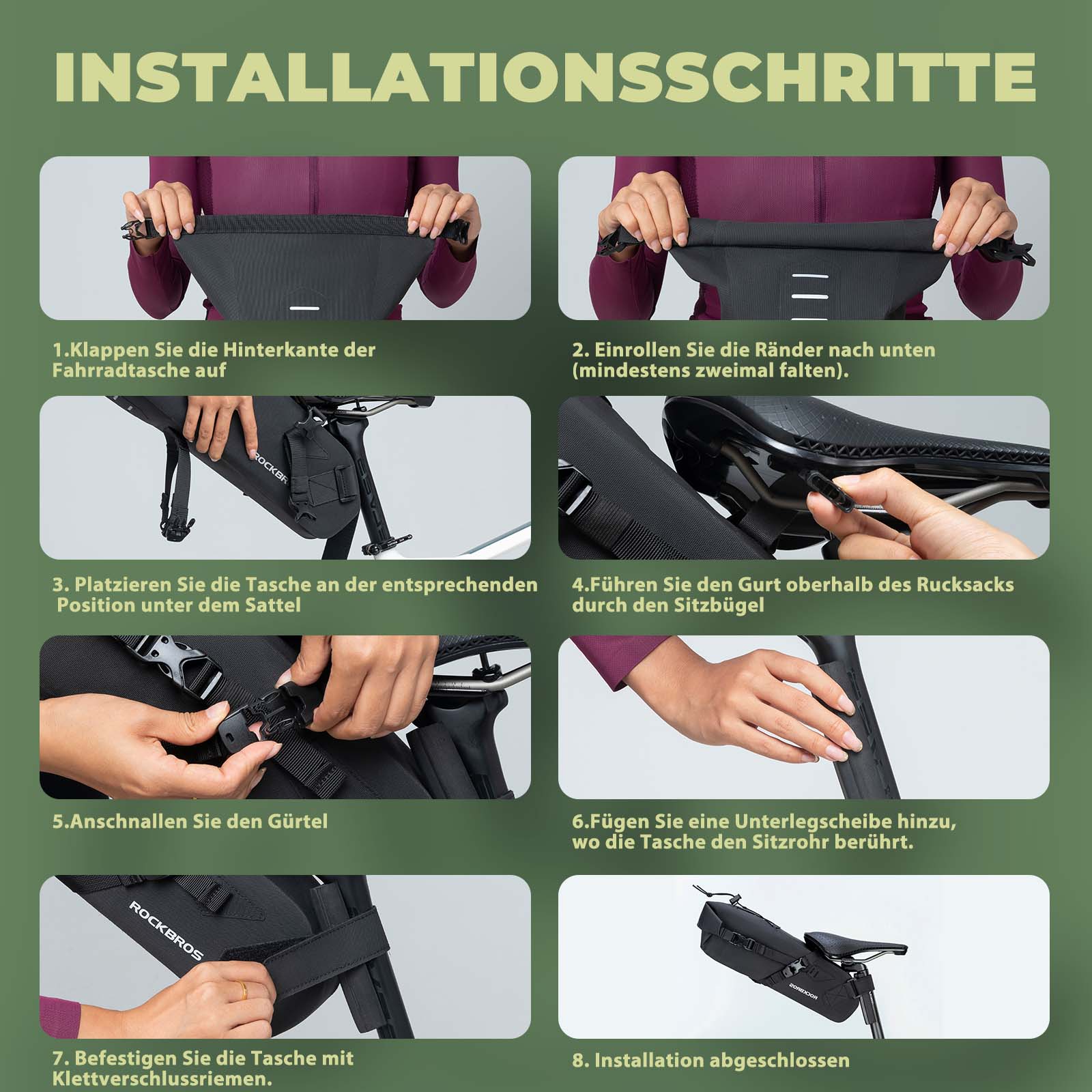• ŁATWA INSTALACJA: Łatwa instalacja bez użycia narzędzi. Szybkozłączki i paski na rzepy umożliwiają montaż i demontaż sakwa rowerowego w kilka sekund.