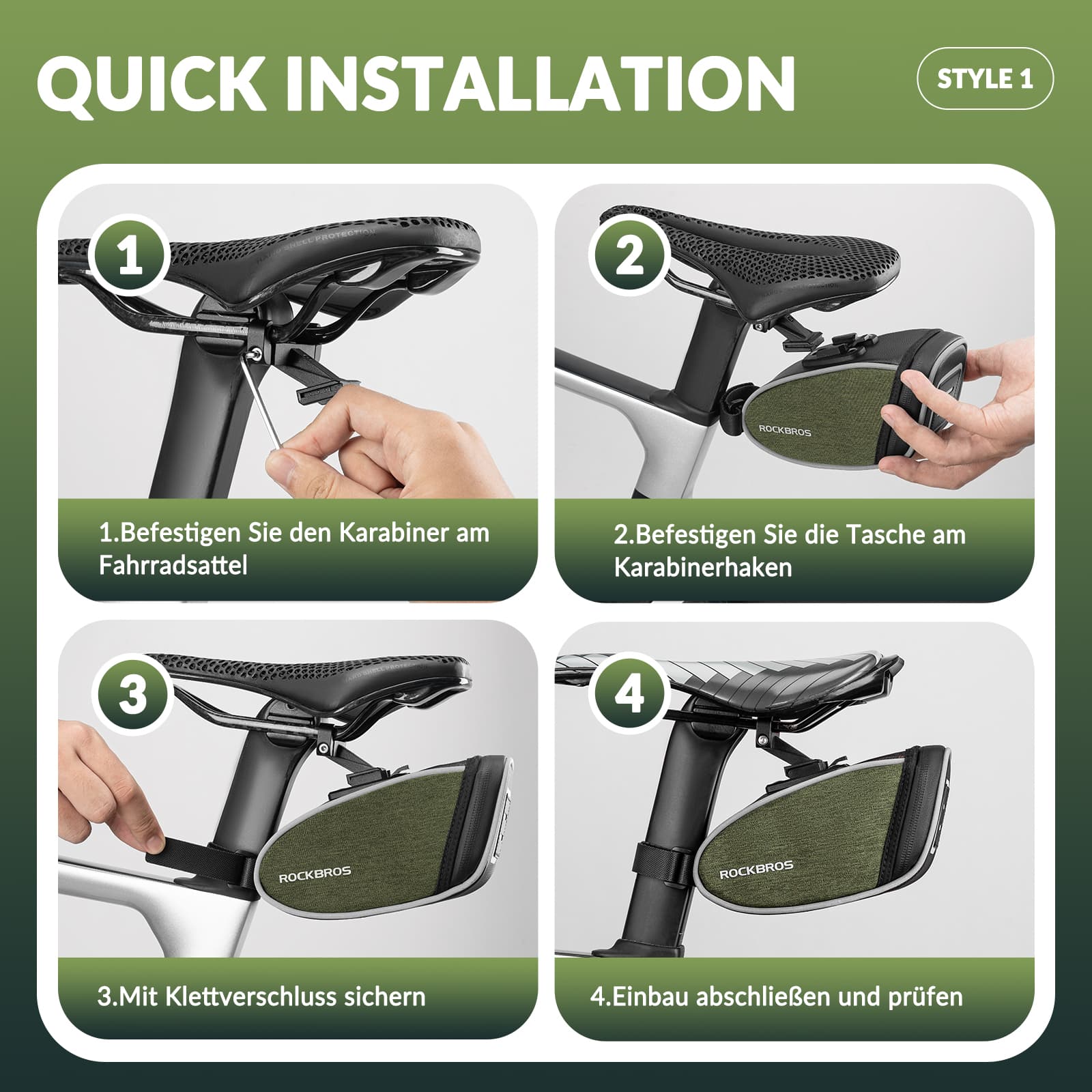 Sakwa siodłowa ROCKBROS o pojemności około 0,45 litra jest mała i poręczna. To idealna torba rowerowa na krótkie przejażdżki rowerem szosowym. Ta torba rowerowa oferuje wystarczająco dużo miejsca na takie rzeczy jak narzędzie wielofunkcyjne, klucze, mini pompka, telefon komórkowy i zapasowe dętki.