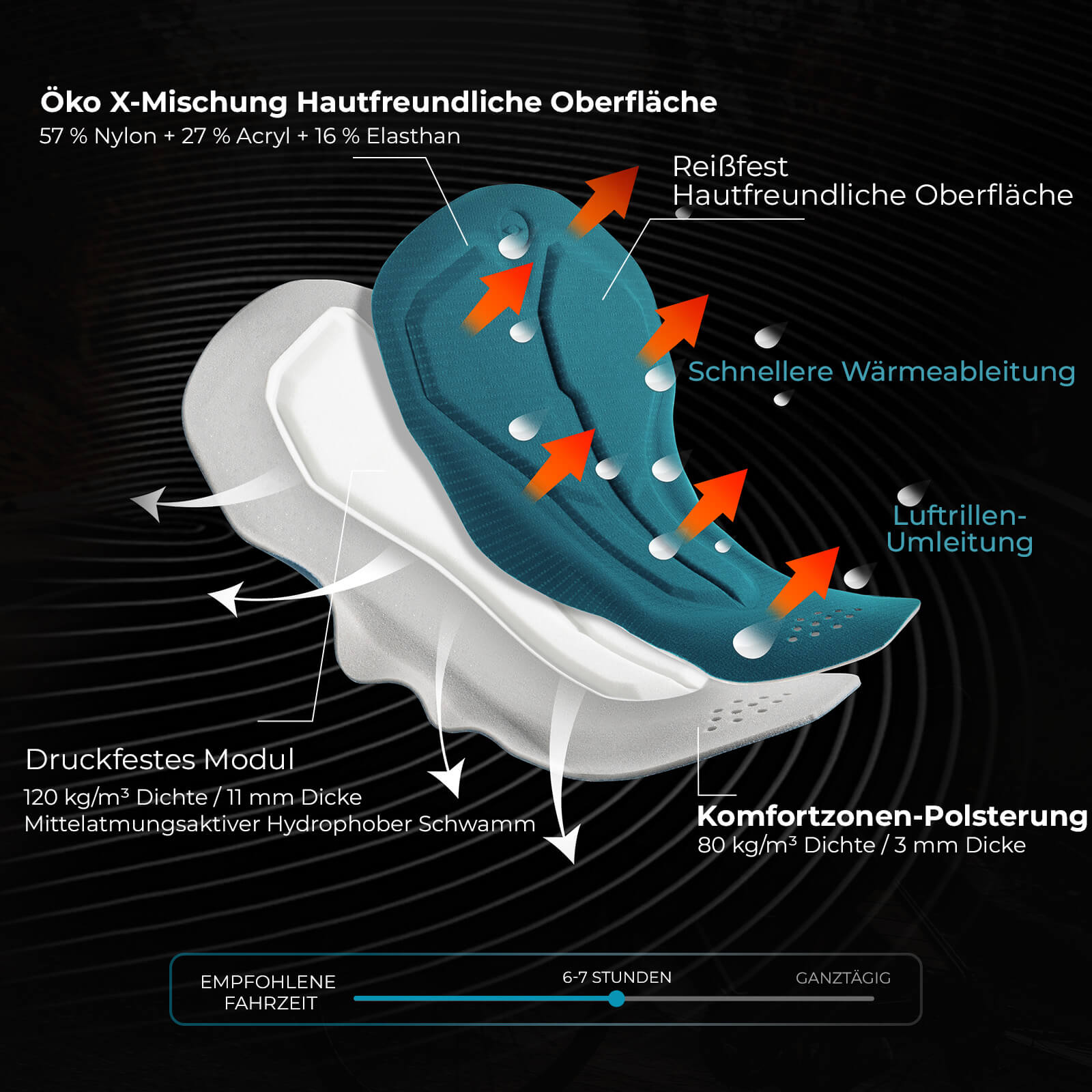 Wysoce elastyczna konstrukcja dopasowuje się do każdej pozycji podczas jazdy. Dopasowane, a jednocześnie wygodne dopasowanie dla optymalnej wydajności.