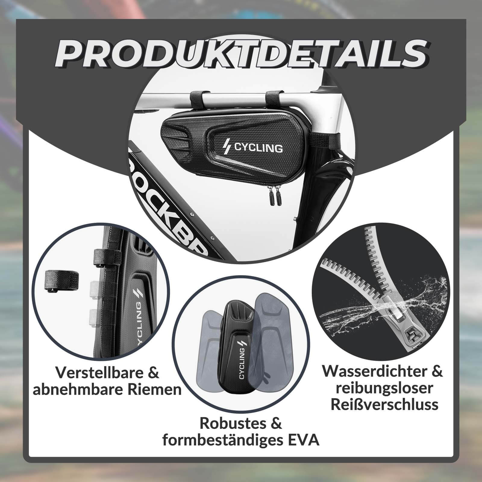 Zewnętrzny materiał tej trójkątnej torby rowerowej to wysokiej jakości tworzywo EVA. Nasze torby na ramę są wyjątkowo wytrzymałe, odporne na zużycie i stabilne wymiarowo, zapewniając doskonałą ochronę Twoich rzeczy.