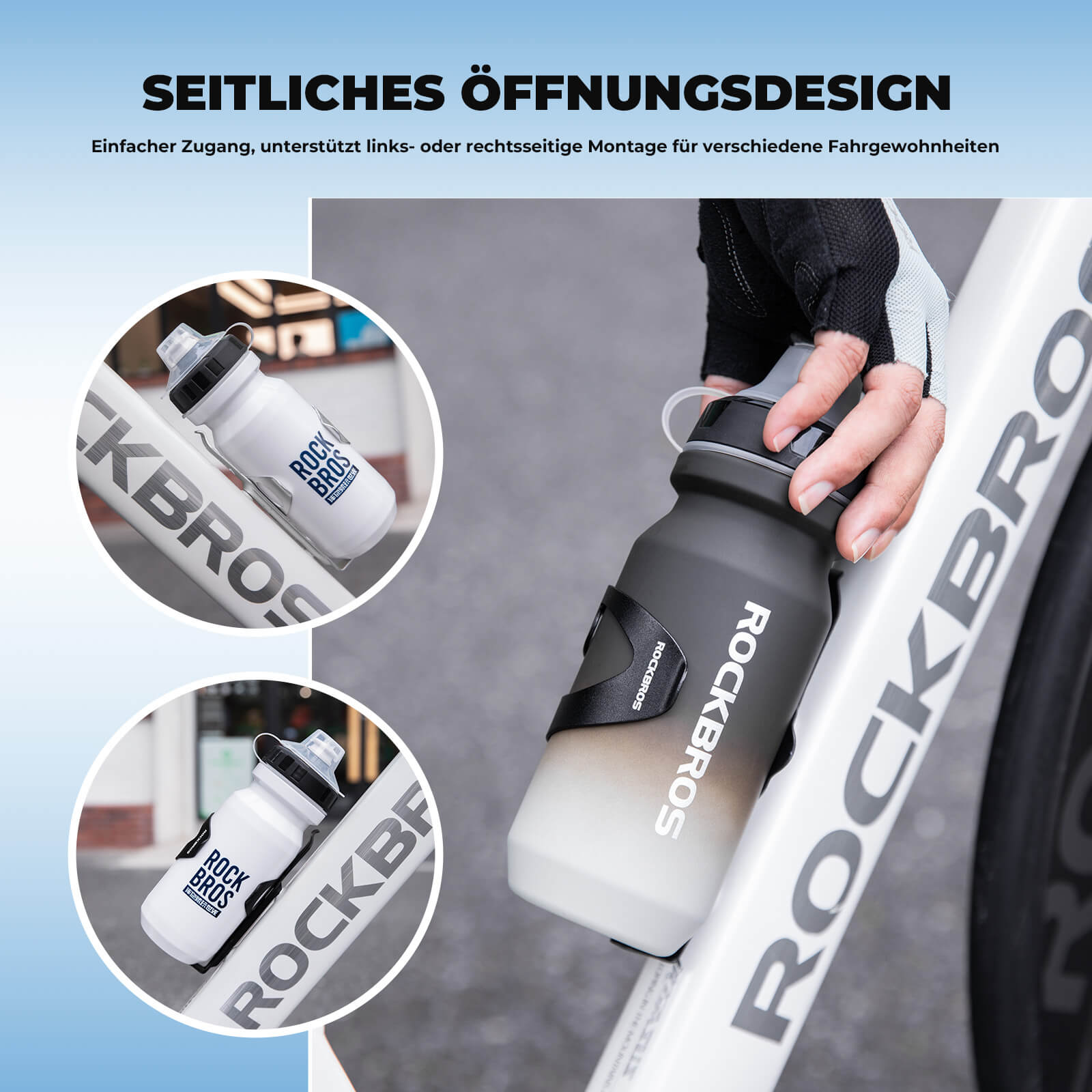 Wygodne otwieranie boczne umożliwia wyjmowanie bidonu z lewej lub prawej strony. Idealne do zmiany pozycji podczas jazdy i szybkich przerw na nawodnienie.