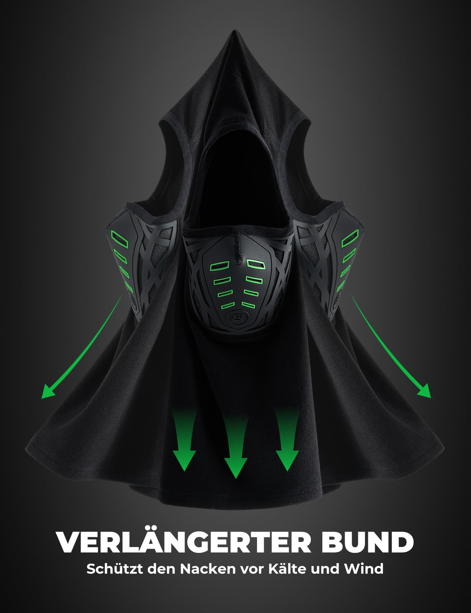 Specjalny materiał chroni przed podmuchami wiatru i drobnym pyłem – idealny do jazdy na rowerze, motocyklu lub na nartach przy silnym wietrze lub w zakurzonym otoczeniu. Niezawodnie chroni przed czynnikami atmosferycznymi.